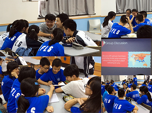 作为高二学生,我们所面临的最主要的问题就是升学与毕业后的就业,“一带一路”在这个方面又给我们带来了什么呢?主持人陈雨桐抛出了这个核心问题。这个话题迅速被引燃,同学们在组内纷纷展开热烈的讨论。随后各组代表上台各抒己见:有人认为“一带一路”能够增强我国的国际影响力,让我们深深感受到作为中国人的自豪感;“一带一路”能为我们提供更多的就业平台与渠道,我们可以发挥自己的外语特长,在各国外交方面做出贡献;“一带一路”能拓宽我们的国际视野,让我们看得更高、走得更远;更有同学提出了更为全面的意见,辩证地分析了利弊并给出肯定的答案。