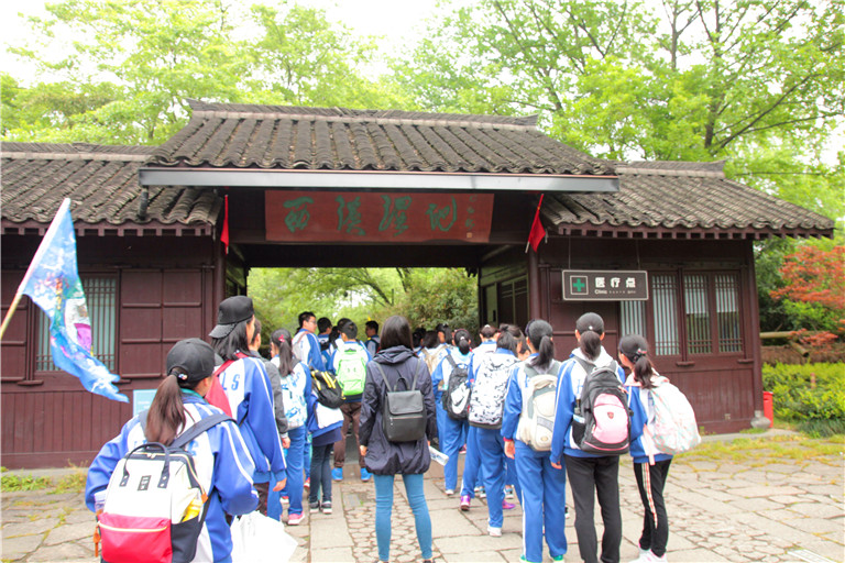 此次春游,从学校出发,至目的地西溪湿地周家村。途径留和路,天目山路,全程步行来回约14公里。早7:30,大部队浩浩荡荡地出发。各班旗帜飘扬,虽然天空落着细雨,但这不减同学们的热情。