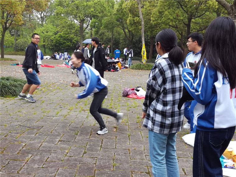 休整了一会,文艺委员开始招呼我们一起玩游戏。一阵阵尖叫与欢呼传来,原来是同学们在玩一个叫做贴膏药的游戏。这是同学们玩得最尽兴的一个游戏了,同学们手拉手围成了一个圈,一名同学追,一名同学跑,随时贴到别人身后,把奔跑的机会转移给别人。追逐着,欢呼着,尖叫着,庆幸着,我们仿佛回到了无忧无虑的童年时代。虽然天上飘着零星小雨,冷风依然嗖嗖,但我们全身热乎,心里更是温暖如春。环顾四周,各个班级的集体活动也热火朝天地开展着,欢乐充溢了整个湿地。集体活动后是小组活动,大家结伴在景区里闲游,欣赏春天的模样,也寻觅可口的美食。