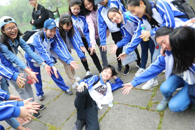 整个春游之行中印象最深刻的就是我们的集体照拍摄了。我们班的戏精——吴至峰同学被邀请到了队伍的最前面。帅帅的忧郁足球王子Mr.Ali也被邀请到了我们的队列中来。现在看看照片,不得不感叹我们班的同学真的是基因太好了。咋一个个都这么好看呢?后来,在一众女生的要求之下,我们帅气的戏精同学与全体女生来了张合照,看看照片,真是众星捧月啊!