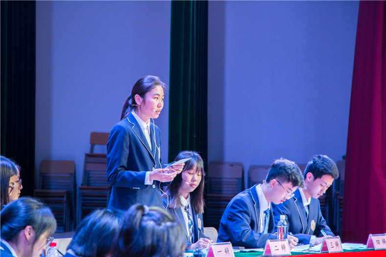 最终,在多次的评估分析后,语文组老师确定了四位正式上场的辩手的名单。为了让正式上场的辩手提前感受比赛时“众目睽睽之下”的压力,最后一次模拟辩论安排在大预班教室内进行。相比于第一次的 “新手上路”,展现在大预班近百位同学面前的,是几位真正可以独当一面的辩手。