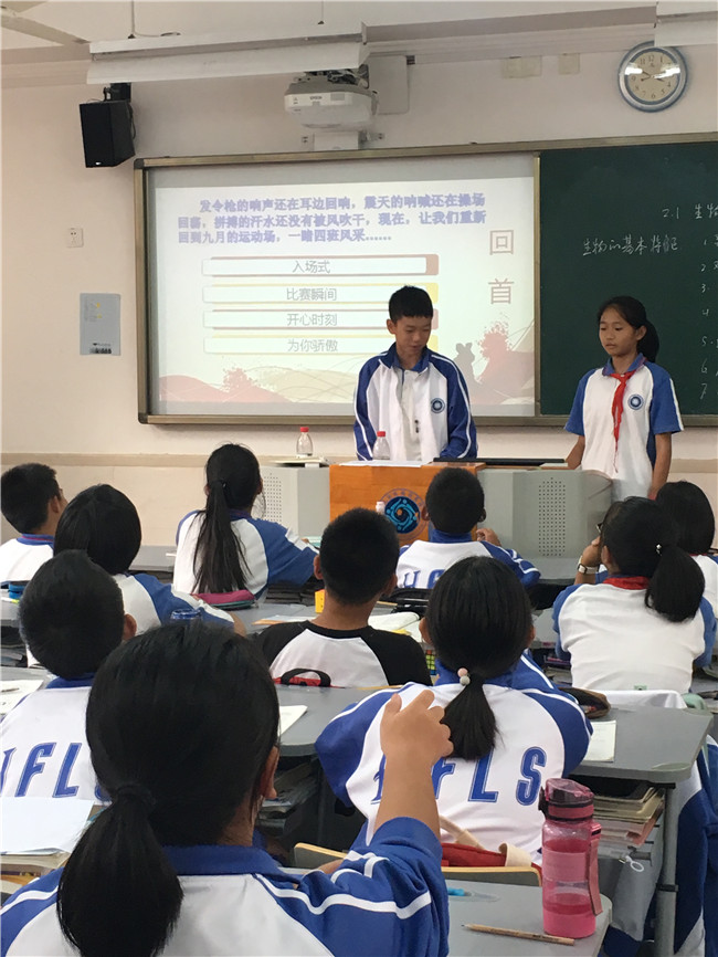 发令枪的响声还在耳边回响,震天的呐喊还在操场回荡,拼搏的汗水还没有被风吹干,在10月8日的班会课上,项劭怡和许柯锐两位主持人带我们重新回到九月的运动场,一睹四班风采……