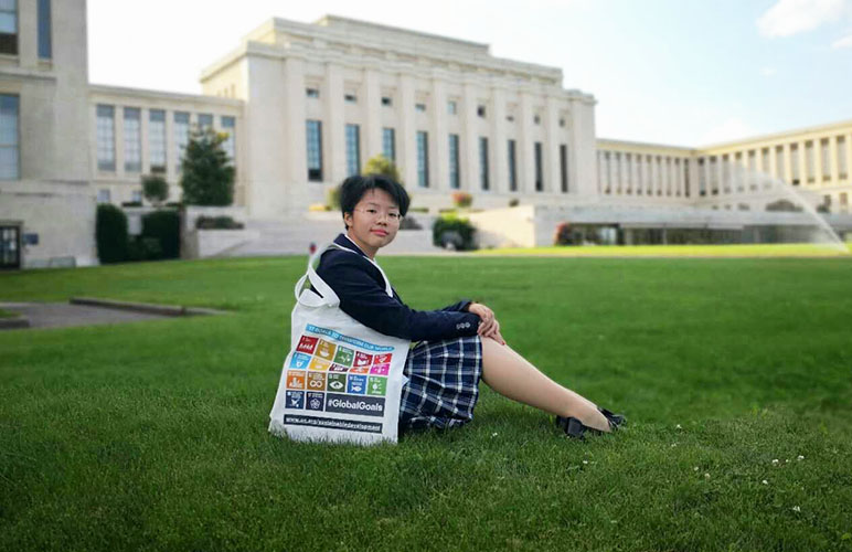 我是来自高二(5)班的留郁芊。今年五月份,在外交学院举办的北京国际模拟联合国大会中,我撰写的论文获得吴建民大使奖,并因此得到了去联合国日内瓦总部参观交流的机会。暑假里,访学团启程前往瑞士。在这长达10天的访学中,我感触颇多。