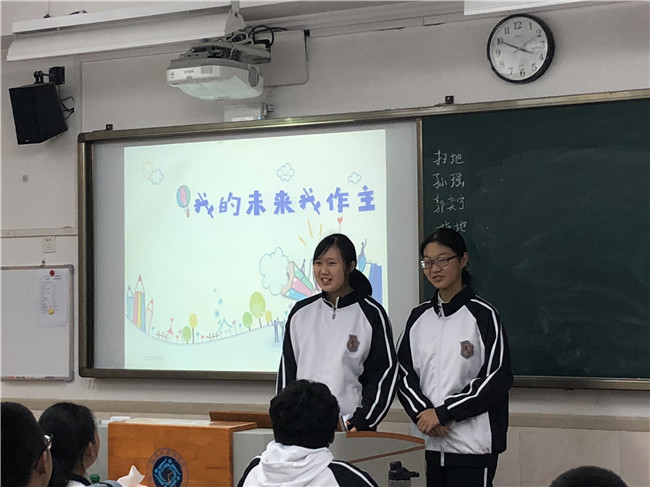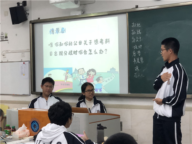 几位家长也通过视频给我们送来了祝福与建议。视频中他们的殷切期望、深沉的关怀让每个同学都非常动容,我们看到了父母在我们成长途中的坚定支持。有了父母作为最坚实可靠的后盾,我们的成长道路也会更加顺利。但不少同学也反映了与父母对未来规划的意见分歧,甚至为此发生争吵。班级的三位同学基于此创作了一段情景剧。在大家为幽默的语言笑声不断的同时,其中更真实地反映了许多家长与孩子的心声。