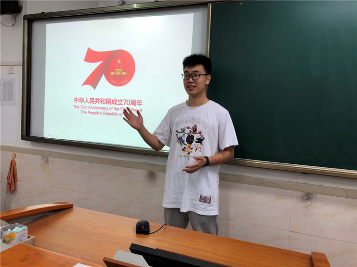 为庆祝建国七十周年,9月19日下午,高三3班开展了一次具有特殊意义的班会。本次班会由郑朝磊同学主持,他用心地准备了一百多张图片,向同学们展示了从公元前六千年到建国以来中国疆域的变化,并用生动的语言介绍了每一个时期所发生的重大事件。短短二十分钟里,郑朝磊同学带领大家走进中华民族几千年的历史,同学们全神贯注地听着,陶醉于这波澜壮阔的历史画卷中。