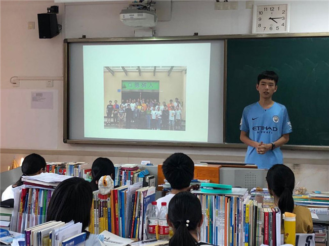 爱国,就要从身边的每一件小事做起,践行垃圾分类,不闯红灯,帮助同学,爱护集体,关爱老人等。还闯同学分享了他的暑期支教活动心得,随着图片的呈现与富有感染力的讲述,全班同学仿佛都随着他的脚步来到了那个位于浙江省东部的偏僻小山村。在略显陈旧的校舍中洋溢着的是孩子们对于新来者的热情,在设施不齐全的旧校舍背后俨然是正处于施工之中的新校舍……这一切,都与祖国的日渐强大密不可分。每一个人都真切感受到一股骄傲之情从心底油然而生。