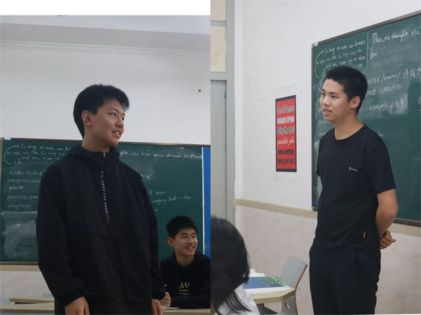 主讲人随即向在座的同学提问,丁宇涵和张海洋同学发表了自己的看法,进一步引发了大家的思考,同学们听得十分认真投入,并展开激烈讨论。