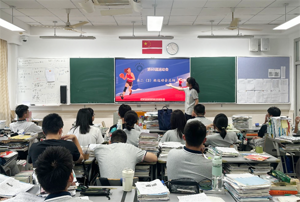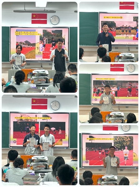 10月13日,高二3班开展校第60届体育节表彰总结班会,胡欣悦同学作为主持人进行精彩汇报,分享了班集体的奋斗历程和心路收获,同学们踊跃参与,用欢笑纪念着赛场上所展现的顽强拼搏的体育精神。
