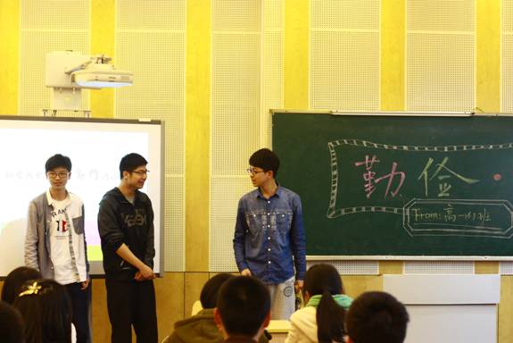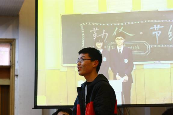 接着,一张张呈现着杭外校园内浪费现象的照片在屏幕上接连播放:残余着食物的餐盘,无声流泪的水龙头,喷涌而出的水花,灯火通明的空旷教室及垃圾桶里未喝光的饮料瓶。这些事情每天都真实地在校园中上演着。而主持人们也引导全班进行了思考:对于这些现象,我们应该如何面对?或者说在“食堂—宿舍—教室”三点一线的生活中我们如何体现真正的勤俭节约呢?同学们都纷纷地表达自己的想法,而高一4班的“大诗人”林政原同学也用自己最美的语言——诗歌来表现,让同学们都被其真挚的情感所打动。
