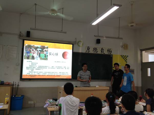 班会以运动会为主线,以项目为模块,为同学们形象生动地介绍了各大项目的特点、注意事项以及训练方法。有体育特长的同学们的经验传授无疑也是这次班会的精彩一笔,使同学们增长了见识,学习了知识,也使同学们回想起一年前运动会时他们的拼搏。这次班会也为运动员们的比赛训练提供了宝贵的建议,是运动员争夺名次的理论基础。
