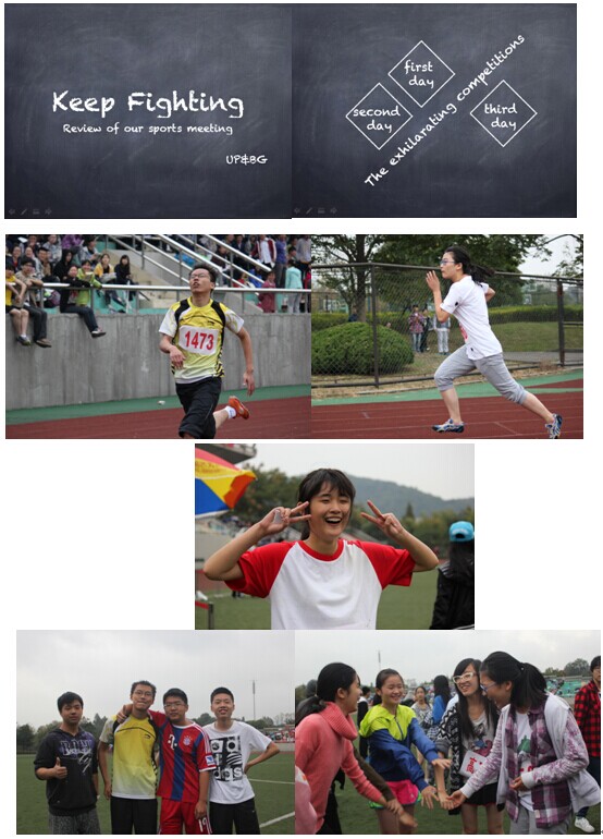 班会主要分为两个环节。在第一环节中,我们回顾了运动会中的入场式和田径比赛的诸项成果。而第二环节便是通过展示照片的形式,更为直观地回忆着我们在那三天里的拼搏。