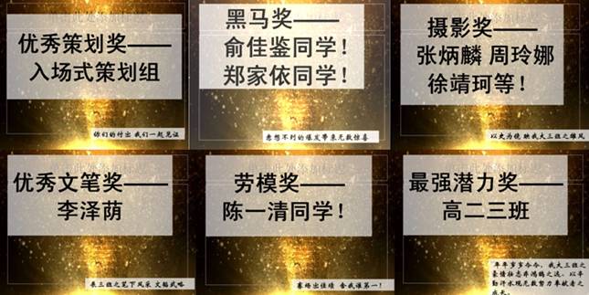 随后的“荣誉颁奖”环节,颁给在运动会期间做出贡献的每一个同学,用“最强潜力奖”“女中豪杰奖”等诸如此类的奖项鼓励大家再接再厉,也稍稍弥补了运动会中一些遗憾,同时显示在下届运动会再战的决心。其中“运动会再演绎”的故事接龙环节也惹出不少笑料……