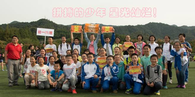 总的来说我们的比赛还是比较完美的,我们的总分是初中组第二高的,同学们为了运动会付出了无限的努力,在闭幕式的那一天整个杭外的校园里都响彻着一个名字,初一(1)班!我三次上台为班级领奖,心里无比激动!