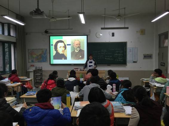 班会的主创组别出心裁地安排了一系列艺术的环节,让我们领略不同艺术形式的魅力。首先出场的是小提琴手天羽同学,她通过大量的实验和例子阐述音乐的魅力:音乐能培养团体意识,音乐能帮助人们更快地完成枯燥任务,音乐能使专长更好地发挥……