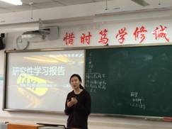 我们班同学对待此次研究性学习活动的严谨认真态度,以及极高的参与热情,展示了我们班同学一如既往的对于真理的不懈追求,我们真的应该为自己鼓掌!研究性学习,是一场特殊的“学习”活动。它要求我们不拘泥于课本,在探究世界的过程中发现问题并解决问题,同时也培养了我们进行问题分析及解决的能力。相信通过这次研究性学习的展示评比活动,同学们在走向未来的道路上会有更加出色的表现。