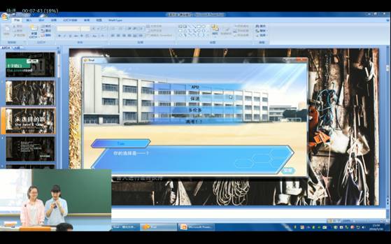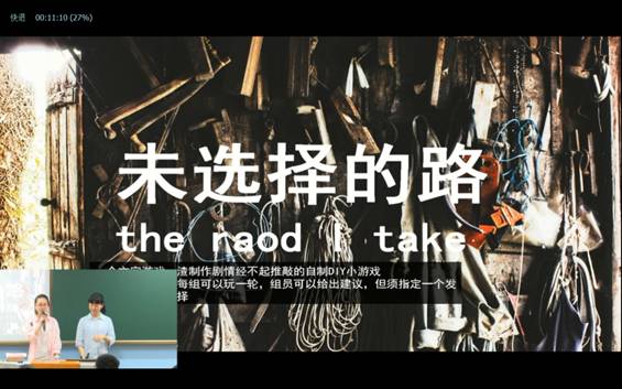 一番富有哲理的开场白过后,主持人带我们玩起了精心设计的模拟游戏,“未选择的路”。游戏在不同的情境之下为我们提供了不同的选择,而我们所做的每个选择都将引我们走向不同的结局和未来。剧情虽有些夸张,但在诙谐搞笑的同时,也的的确确让大家感觉到了选择的重量。接下来的环节里我们进行了酒店睡眠测试员面试的模拟,让大家更加了解了如何面对未来会参加的面试,如何巧妙地面对考官不着边际的发问和刁难。