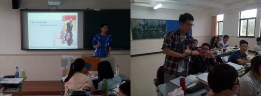 张徐磊同学先为我们阐述了他自己对理想和信念的认识,并举了2个例子来抛砖引玉。著名的演讲家尼克胡哲,天生没有双手双脚,凭借自己对生命坚定的信仰成功的赢得了大家的赞善。他又列举了一位我们在上海学习期间街边经常遇到的DJ男孩。那个男孩常常受到他人的嘲笑,但还是坚持歌唱,这种热爱生活,活出自我的信念正是我们学习的榜样。