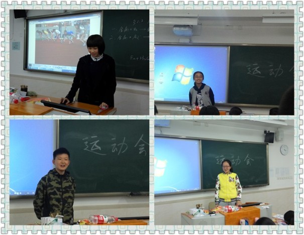 运动会结束,又到了各种看照片以及吐槽的班会时刻!虽说这次团体总分不尽如人意,在男、女子4*100的比赛上也状况多多,但这次运动会,我班同学积极快乐的心态,为运动员加油鼓劲的热情,也是我们的一大亮点。