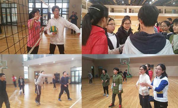 体育委员王资将全班同学分成四个小队,何宝琦同学为我们详细讲解了游戏规则。刚开始大家还有一些拘谨,发球与接球基本上都是一对一,单兵作战,相互之间也鲜有配合。随着比赛的进行,我们配合地越来越默契,互相补位,有些同学负责打掩护、有些同学负责防守、有些同学则负责进攻,战术运用越来越丰富,场面越来越激烈。小组赛两两PK结束后,不知不觉已过了下课时间,但同学们仍意犹未尽,两支胜利的队伍继续进行了最后的终极对抗赛。被淘汰的小组同学也并没有离去,依然热情高昂,在场边加油呐喊,殷吉儿同学还给我们带来了生动的现场解说。