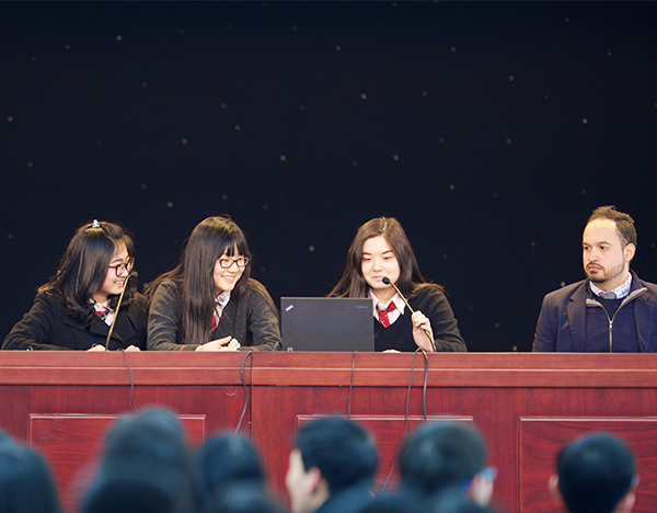 3月6日下午,高三A班的郑安琪、周夏宁、林梦江同学在行政楼6楼为高三年级的同学们做了有关留学安全的小讲座。三位主讲人还邀请到了英语外教Mr.Matthew Cedeno 作为特邀嘉宾。在讲座期间,他们从毒品、枪支、住房、经济、食品等方面深入浅出地讲述了在美国或者英国留学时安全方面的注意事项,令在座同学受益匪浅。