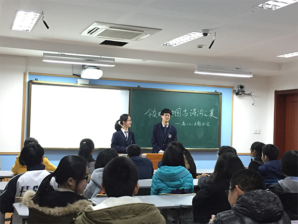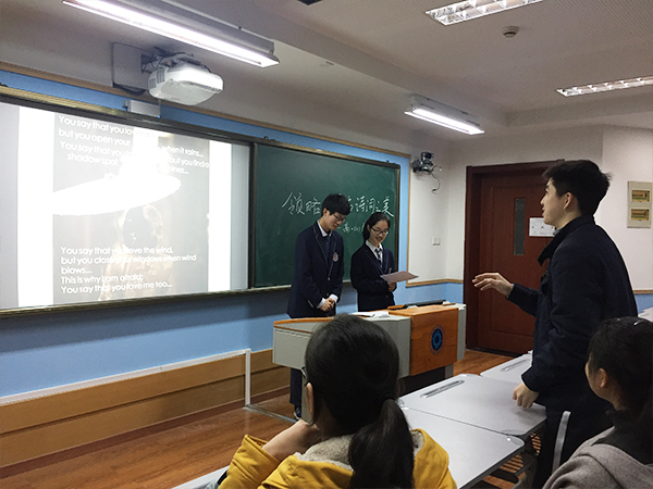 随后以《枫桥夜泊》的古诗今译让大家展示了自己的文学功底,而一首英文小诗的翻译也让大家再次感受到中国汉字文化的博大精深:有的组用最直接、简洁的语言翻译;有的组则加入了一些比喻、拟人的修辞手法;有的甚至翻译成了一首古诗。