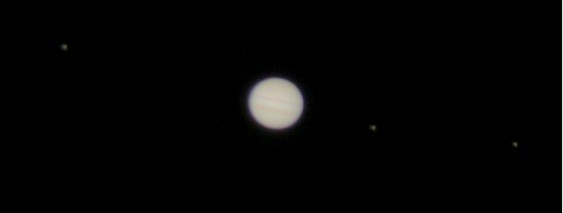 下图为Great大天文社成员当晚拍摄到的木星照片,图中依稀可见他的三颗卫星和大红斑。