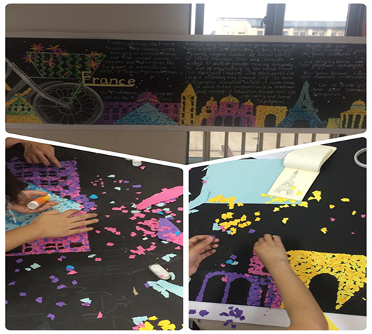 万国嘉年华对于同学们来说则是一次全新的体验。负责此项活动的郎天玥、蒋瑞羿同学分享了自己的心得体会。接到一个相对陌生的活动任务,一开始时免不了迷茫。然而通过几天时间的查阅相关资料,她们对于所抽到的国家——法国,有了更为深入和全面的理解。确定方向、写稿改稿、分配任务……一切都井然有序地进行了下去。虽然其中有过一两个小失误:例如搞错了伏尔泰的出生时间,但在大家一阵齐心协力的努力下,问题都得以顺利地解决,而处理问题的过程也成为了大家共同珍藏的一片回忆。说到最后,仍然是感谢之词。万国嘉年华作为少有的几个全班同学共同参与的活动,带来的感动和惊喜想来也是更多的。上台演出的那天,当最后一句歌词轻快地流淌出来时,每个同学的心里应该都充盈着沉甸甸的满足和自豪吧。集体活动使我们拥有了相同的经历和情感,也因此使我们彼此之间更加熟悉而包容,这可能就是集体活动的意义所在。