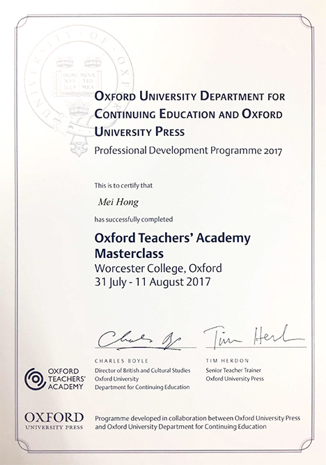 今年暑假,我校高中英语组的洪梅老师获英国牛津大学暑期项目全额奖学金并赴英国牛津参加了从7月30日至8月12日为期两周的教师进修课程。