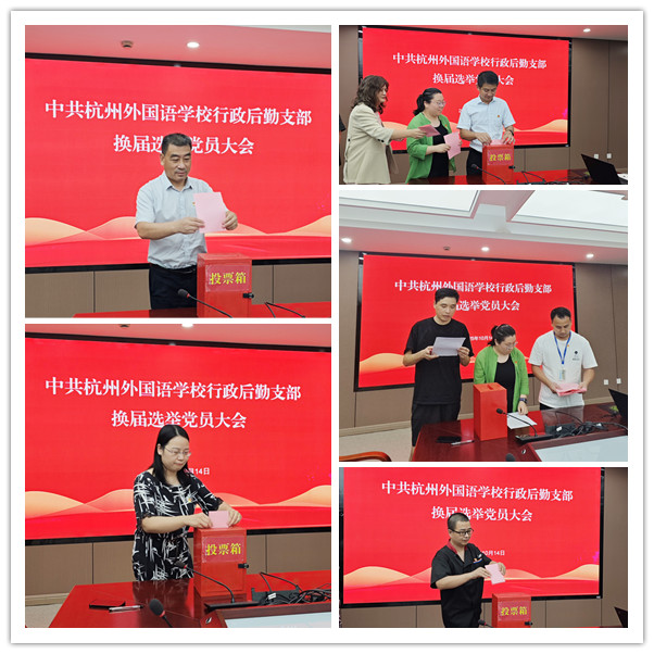 随后,会议严格按照《中国共产党章程》和《中国共产党基层组织选举工作条例》有关规定,表决通过了《杭州外国语学校行政后勤支部党员大会选举办法(草案)》及监票人、计票人建议名单。在充分酝酿候选人的基础上,全体与会党员以无记名投票、差额选举的方式,选举产生由童云波、陈燕华、陈建杰三位同志组成的新一届行政后勤党支部委员会。