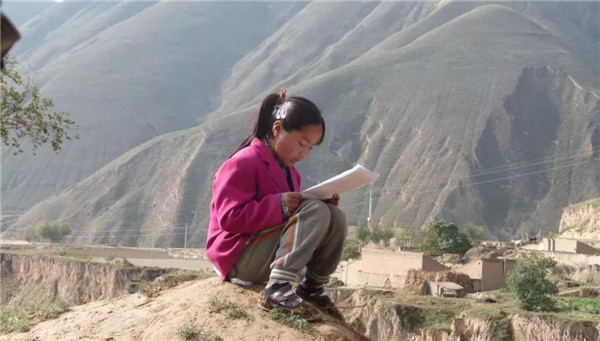 还是在土坡上,马百娟念自己的作文,她说,“长大后去北京上大学,然后去打工,每个月挣1000块,给家里买面,因为面不够吃,还要挖水窖,因为没水吃。”