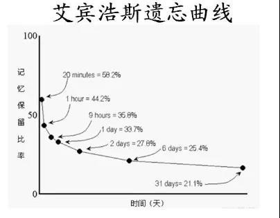 记忆衰退理论:必须及时复习。德国心理学家艾宾浩斯研究发现,遗忘在学习之后立即开始,而且遗忘的进程并不是均匀的。最初遗忘速度很快,以后逐渐缓慢。24小时内复习所学的知识容易记牢,8小时之内及时复习效果最佳。所以哪怕你是记忆的天才,只要不复习也会遗忘,这是人类大脑的普遍规律。
