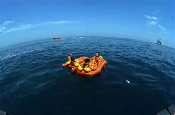 △ 2017年8月,邓清明等航天员进行海上救生训练