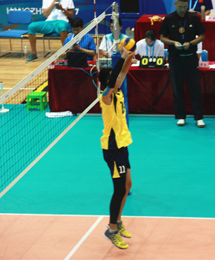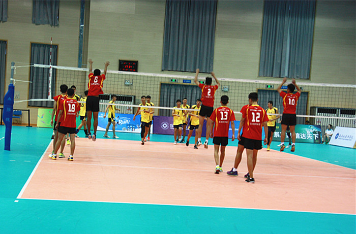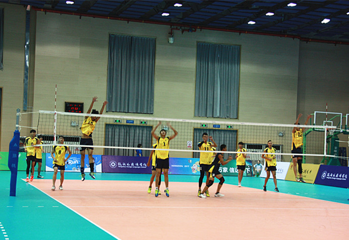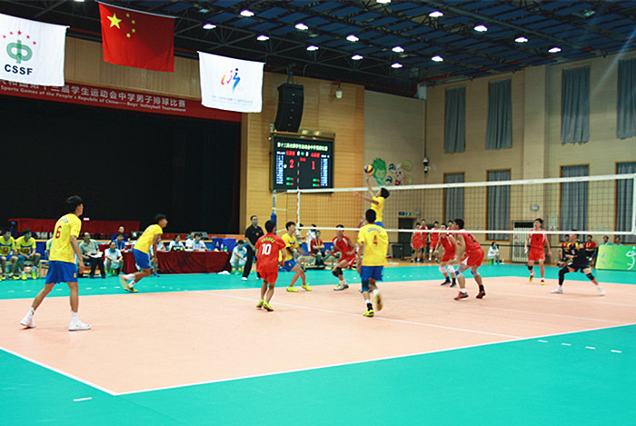 9月7日晚,中华人民共和国第十三届学生运动会中学组男子排球比赛继续在杭州外国语学校体育馆举行。