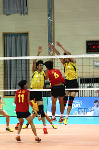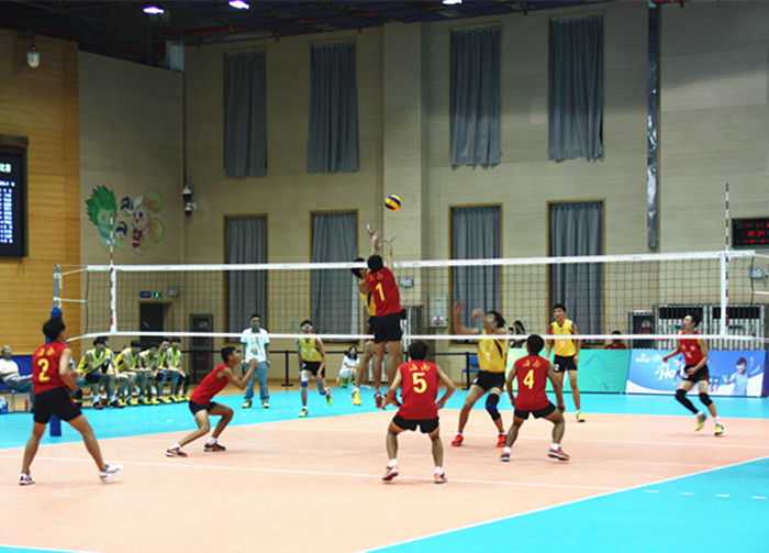 海南队不甘示弱,球员已一个精彩的扣杀,夺得第二局的第一分,然而北京队实力不凡,像历史重演般地又把第二局的比分定格在25:21。