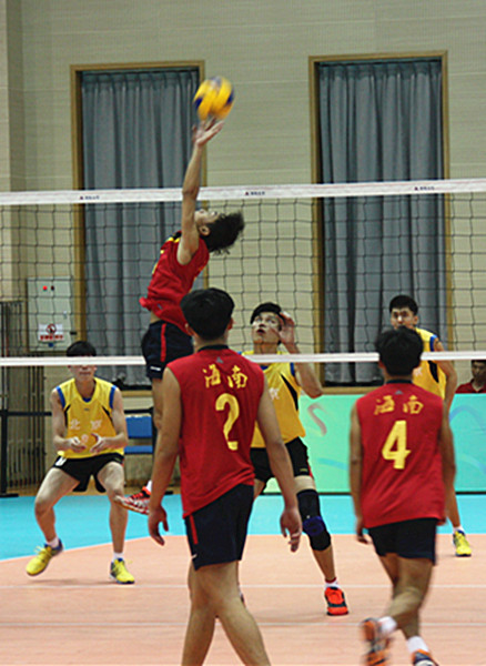 夜幕降临,第十三届全国学生运动会中学男子排球比赛9月8日晚的比赛如约而至。首先上场的是海南队对战北京队。