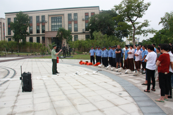 8月30日,第十三届全国学生运动会驻校消防官丁参谋为一线员工讲解了校园火灾的发展规律、燃烧产物及其毒性、火灾事故的隐患、预防、逃生以及消防器材的使用等基本知识。丁参谋还在现场亲自示范指导了灭火器、消防水带等消防器材的使用。后勤公司副总经理汪荣林在场主持。