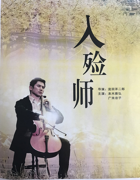 这幅海报的构图非常简单,一个男人和一行字。白色的小林大悟拉着大提琴,这一幕正是他在草原上,心中的一切杂念随风飘散的时刻。纯白正像他的心灵,是无暇而平静的。红色的日语是入殓师的意思,代表了这部电影的名字、男主角从事的行业和社会上每一个从事这份工作的人。这份职业与生死息息相关,用鲜艳的红色表示再合适不过。若是每一种情绪代表一种颜色,则他们交集后的模样便是无限的黑色,这也是选取这个背景想要表达的含义。