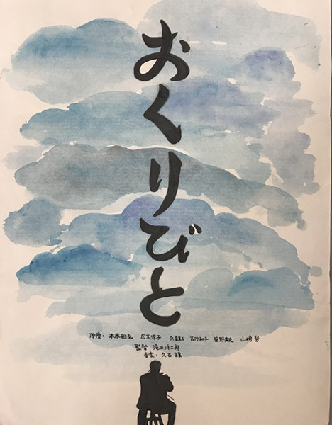 这张海报中的场景是电影中最令我印象深刻的场景之一,只是将人物的比例缩小,给天空留下了更多的空间。本来是想把整张海报设计为黑白色调,但是发现这并不符合《入殓师》给人的真正感觉——不应该是压抑,更多的应该是悲而不伤。看到这样一个简单清爽的画面,大家应该都会联想到小林大悟拉奏大提琴时,悠扬的音乐在空旷的原野和天地之间飘荡,这就是《入殓师》带给观影者的感受——平静、治愈人心!