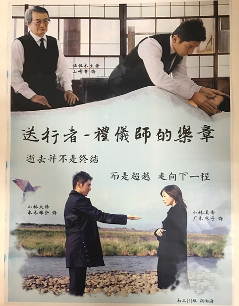 对于入殓师海报的理解,我的也许和大部分人不太一样,但这取决于每个人的经历。09年的时候,我身边的一些亲人相继去世,我常常参加葬礼。在那时的印象中,总是有葬礼的场景出现。所以从那时候起,葬礼在我的认知里是一块阴影,大多数时候都以冷漠来定义葬礼。在丧事的习俗中,总会有做法事。当家属沉浸在悲伤中的时候,相关的人就会趁机捞取钱财,在旁边走几个形式主义的步伐就会成为收钱的理由。还有一群莫名其妙奏乐的人,也同样如此。所以当我在看《入殓师》的时候,脑海里充斥的就是我曾经看到过的那些葬礼的画面。而对比起来,电影中的小林大悟是那样的温暖人心,令人感动。还有澡堂的老爷爷在老奶奶去世的时候那深情的一眼,也非常令人难忘。电影中没有出现过任何家属付费给入殓师的场景,只有几串表示歉意的柿饼。这也是在凸显入殓师这样的一个职业的神圣感。而现实中的那些办丧事的人,就像地狱中的秃鹰,扑上来问家属要钱,这实在令人感到悲哀。