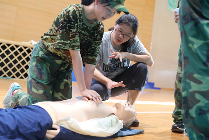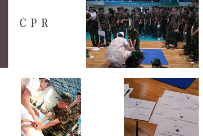 迷糊之中的铃声,提醒我军训第二天已经到来了。军训第一天就好像给我们的身体来了个下马威,腰酸腿痛手臂酸,各种状况都出来了。虽然没有了刚开始的那种“活力”,但是晨跑的热情依旧不减。上午的训练基本是复习前一天学习的内容,然后再学习正步走以及与齐步走的转换。太阳好像离我们只有一米,训练时汗流浃背,就连休息的时候我们都要融化了。但是大家尽管嘴上叫着“热”,身体还是很诚实地服从命令。下午大家在体育馆学习了心肺复苏的基本知识,同时还“上手操作”,并且拿到了证书。晚上,在暮色中,依然是擒敌拳那有力的动作和响亮的“嘿!”。疲倦却又充实的一天。