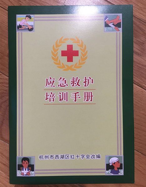 感谢西湖区红十字会给每位同学赠书一本――《应急救护培训手册》,感谢留下街道和留下医院的大力支持,感谢军训教官的现场指挥配合,感谢校医和体育组老师的付出。