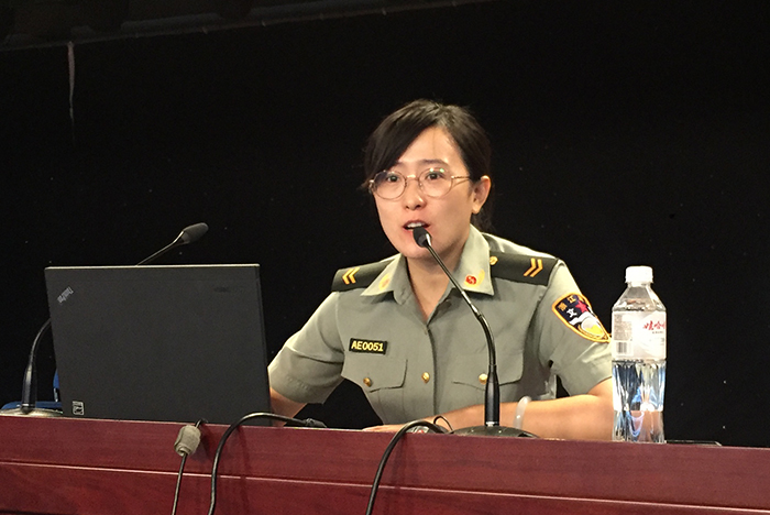 李参谋首先结合近几年高校发生的火灾案例,为同学们阐述了火灾的定义,介绍了A、B、C、D四个火灾等级的具体意义,分析了火灾产生的具体原因,并特别强调同学们要遵守校纪校规,不使用违禁电器,减少引发火灾的隐患。随后,李参谋为新生们讲解了火灾发生前的预防措施和火灾发生后的补救措施。最后,李参谋重点介绍了火灾后的疏散与逃生方法,让同学们学会如何向119精简地说明火灾情况、位置以及在灭火后的具体做法。