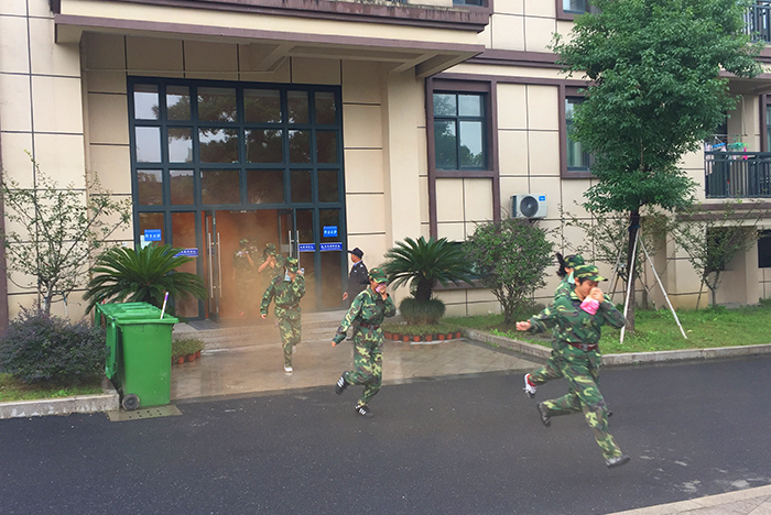9月28日下午,我校开展了火灾逃生演练活动。随着警报声的响起,浓雾弥漫了宿舍楼,同学们听从口令,用湿毛巾捂住口鼻,在第一时间冲出寝室,按照指定的路线迅速撤离,到达安全区域。