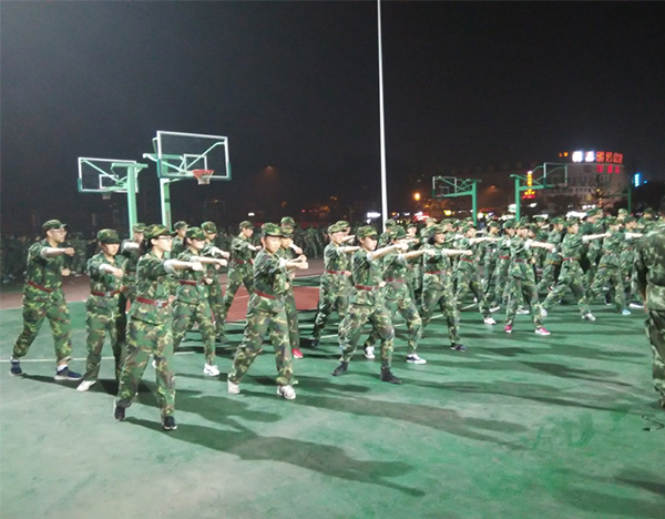6天军训就是在训练与吃饭的交替循环中度过的。每天紧张却又充满欢乐。当然一天当中最喜欢的还是晚上的训练。每到夜晚,篮球场上的灯亮起,眼前便一片绿晃晃的。各个班在一起学习军体拳。不得不说军体拳打起来真的很帅。整齐的挥臂与踏步,每一个动作都带着杀气。大家站在一起打拳最讲究的就是整齐。在一天又一天的训练中,我发现同学之间越来越有了默契,在打每一个动作时大家都会看看身边的人,学会去和他人配合。我觉得大家团结一心做事的感觉真的非常好。
