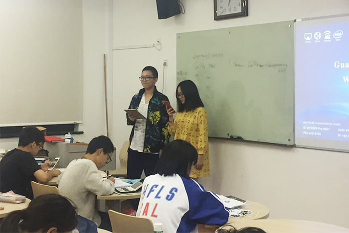 在每一位同学朗读、交流观后感之外,主持人将全班同学分为4人小组,并给每组发了一份调查问卷。调查问卷的内容均取自于《辉煌中国》纪录片中出现的知识点。答题过程中,同学们的表现十分出色,能答对难度并不小的问题。