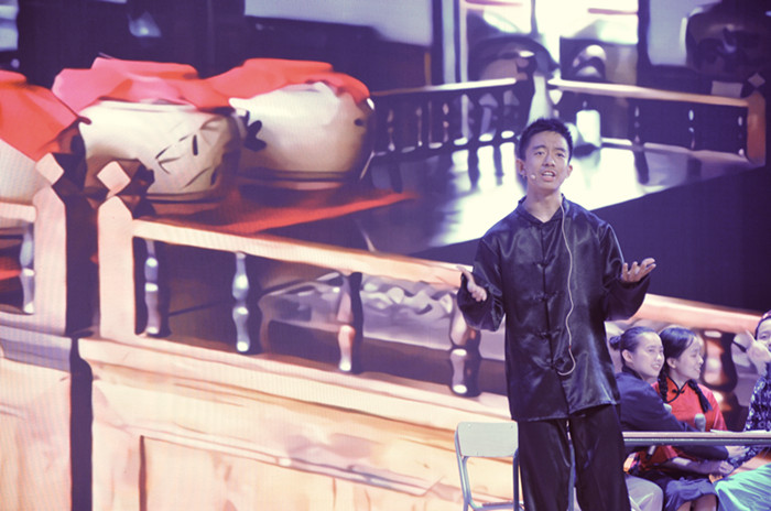 作为全年级唯一一部独角戏的演员,我相当自得。我们组的剧本编写过程一波三折,最后伟大的编剧兼导演陈思远一锤定音——写独角戏!于是,用了一下午,这篇两千多字的稿子就洋洋洒洒地写出来了。我很崩溃。到了班里表演的时候,非常不好意思,稿子我还没背出。多亏了机智的组员的提醒,我才完完整整演下来了。现在回头想想自己第一次表演时犯的那些错误,也是险险胜出,没什么可骄傲的。