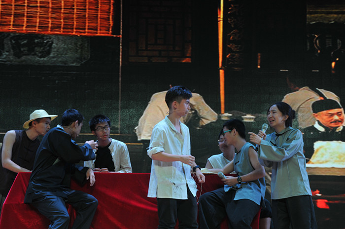 六个班级,六场戏,不同的风格,都真真切切地动人,实实在在地震撼。不同的脸庞和声音,不同的表现方式,却都将《呐喊》中的经典人物生动、自然地呈现在观众面前。那个渴望冲破封建桎梏不顾一切革命的夏瑜,那个看似疯癫痴狂实际却已然觉醒的狂人,那个让人哀其不幸怒其不争的愚昧投机的阿Q,那个穷困潦倒迂腐顽固最终被社会所吞没的孔乙己……社会的尖锐矛盾和广大群众的麻木无知,在这些角色的冲突、争执中被揭露,而剧情也一次次走向高潮,现场的观众随着角色激昂的演说鼓掌欢呼,也为革命者生命的逝去唏嘘不已。