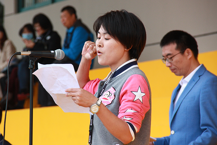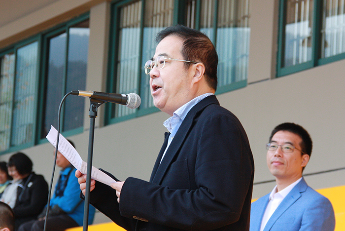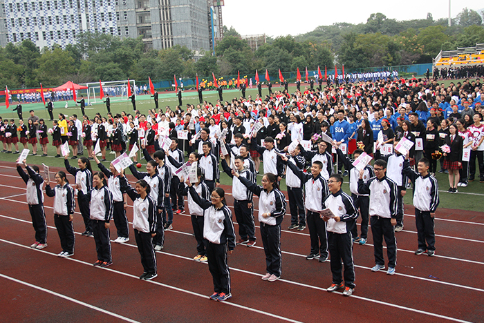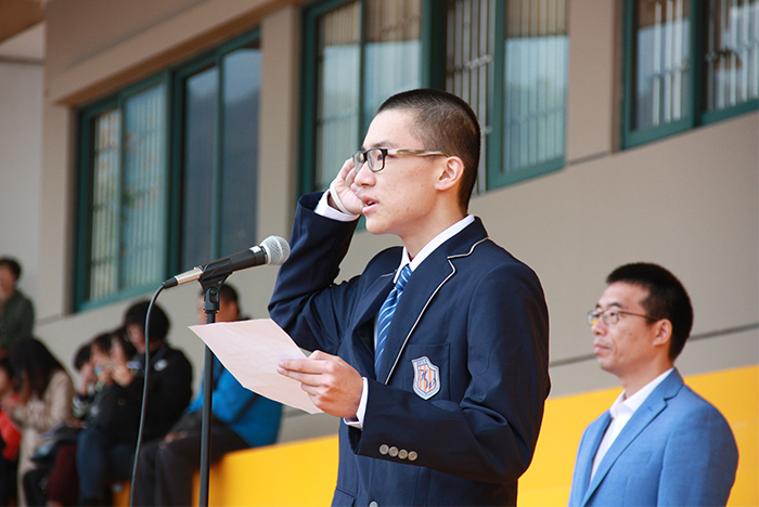 校长方健文教授致开幕辞。方校长首先代表学校向所有参与体育节、运动会筹备工作的师生员工表示衷心的感谢,向全体运动员、裁判员及工作人员致以崇高的敬意。方校长指出,我校十分重视体育教学,大力开展阳光活动,不仅营造了蓬勃向上、充满活动的校园文化氛围,更是塑造了同学们大气、睿智、阳光、自信的气度和品格。今日恰逢党的十九大胜利开幕,方校长希望同学们努力拼搏,赛出风格、赛出水平,以运动成绩和精神文明的双丰收,向党的十九大献礼。