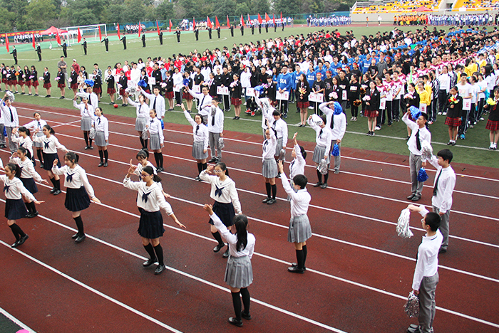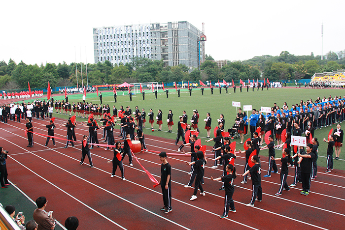 10月18日上午,我校第52届田径运动会开幕。校长方健文、党委书记徐继彬,副校长夏谷鸣、楼林军、吴锋刃,党委副书记唐玉娣,副校长张俊峰,学生处主任朱伟杰等大会主席团成员出席开幕式,全体教职工到场观摩。