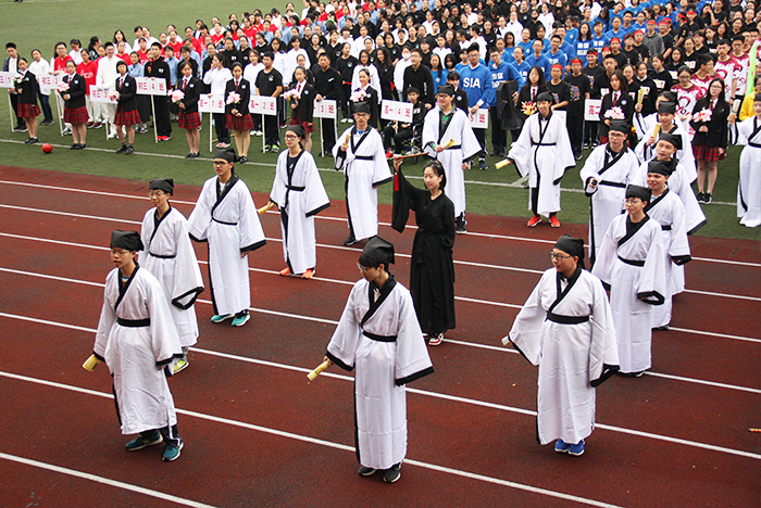 开幕式上,国旗队、红旗队、鲜花队及各班级代表队依次走过主席台前。各班级的入场式设计别出心裁、创意十足,不仅展示了同学们朝气蓬勃、奋发向上的精神风貌,更表达了同学们对于体育运动的热爱,为本次体育节注入了无限活力。